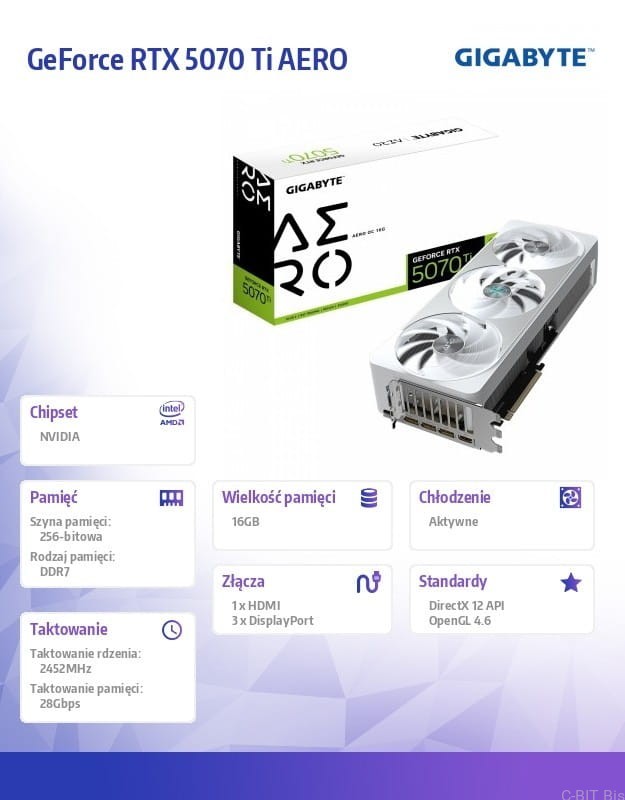 Produkt: Gigabyte Karta graficzna GeForce RTX 5070 Ti AERO OC 16G 256BIT GDDR7 3DP/HDMI