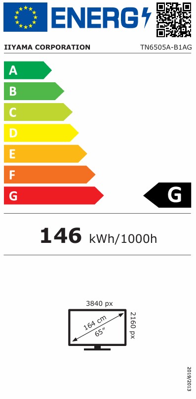 Produkt: IIYAMA Monitor 65 cali TN6505A-B1AG IPS,4K,40pkt,500cd,nonOS,1200:1,5ms, DeepContrast-IR+, 1xVGA,2xHDMI,DP,USB-C(PD65W),2xRJ45,2x20W,PiP,PbP,UCHWYT